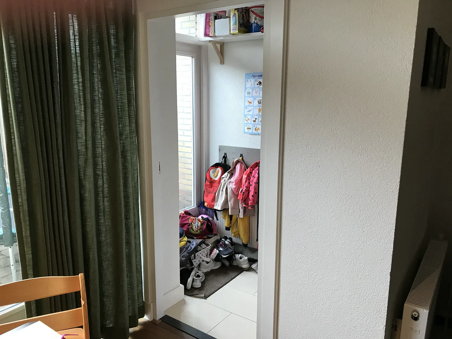 Per prima cosa, abbiamo lavorato per dare ad ognuno un proprio spazio. Ho proposto una riorganizzazione della zona giorno abbastanza radicale. Questo permetteva di ridurre al minimo gli angoli morti che erano i più soggetti al caos. Ho proposto di spostare il tavolo da pranzo che si trovava davanti ad una grande porta finestra, unica fonte di luce della stanza. Così facendo abbiamo liberato lo spazio davanti alla finestra e permesso alla luce di entrare libera.